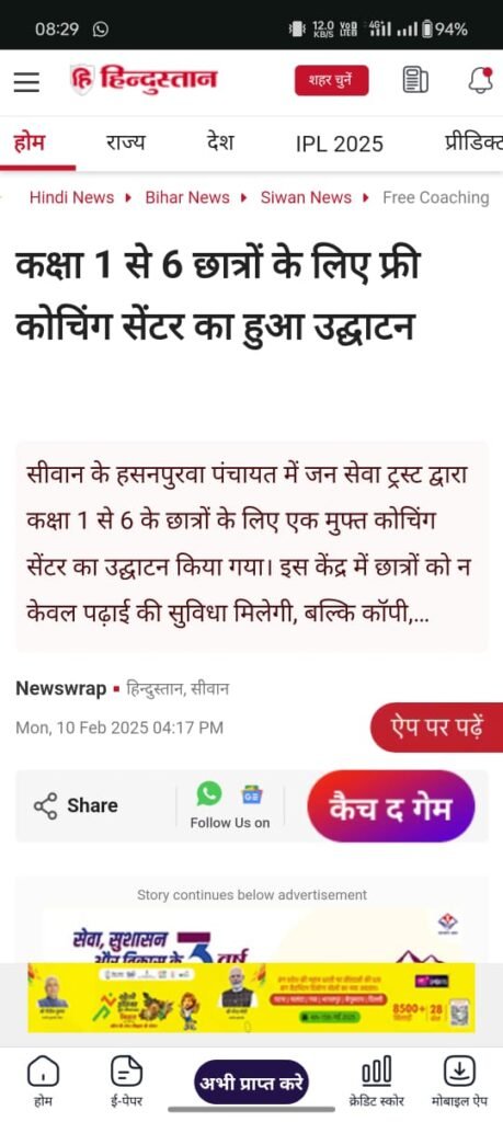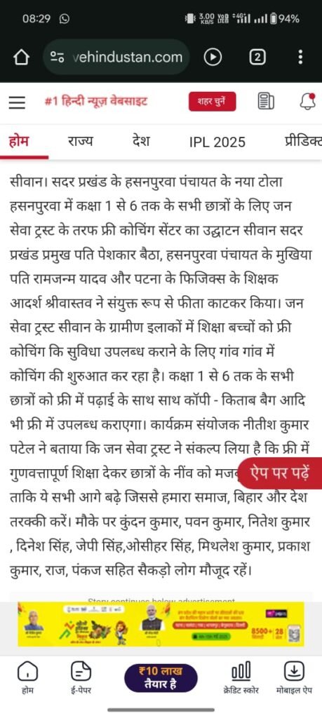 Welcome to the Media Coverage section of Jan Seva Trust Siwan, where we showcase our initiatives, community events, and social impact through photos featured in newspapers, online portals, and local media.